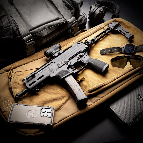 Desarrollada en colaboración con HS Produkt, la Kuna con retardo de rodillo es una PDW fabricada con precisión y diseñada para un ajuste y un funcionamiento óptimos. La pistola se ofrece en dos versiones. Una cuenta con un rail Picatinny integrado en la placa final, mientras que la otra variante cuenta con un soporte Strike Industries FSA instalado en la placa final del rail Picatinny.