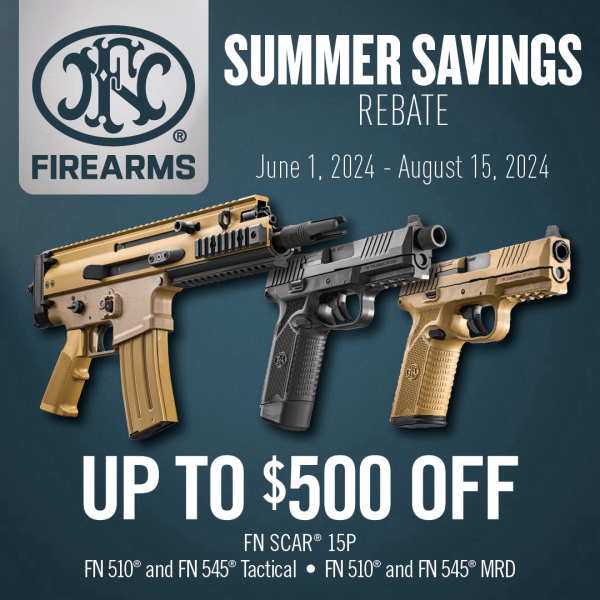 (McLean, VA -) FN America, LLC anuncia el programa de reembolso Ahorro de Verano, que se lanza el 1 de junio y que incluye ofertas de devolución de dinero en modelos populares de las series FN SCAR 15P, FN 510 y FN 545.